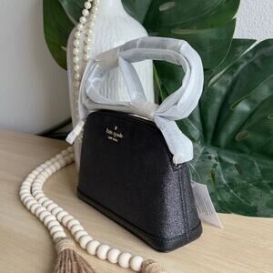 NWT - Kate Spade Small Dome Crossbody Glitter Fabric Black Tinsel