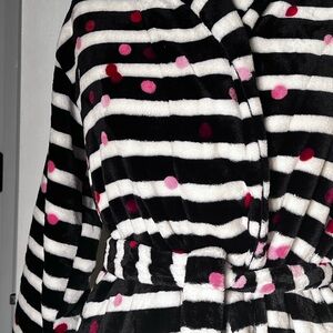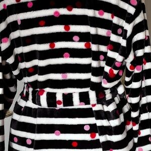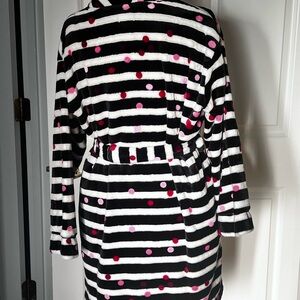 NWT Kate Spade Stripe black white Polka Dot Robe chenille plush size medium