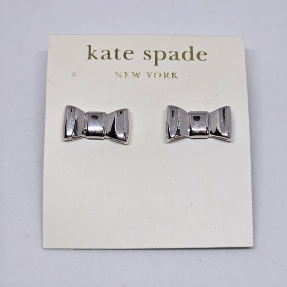 NWT Kate Spade Take a Bow Stud Earrings Silver Tone