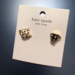 This is a super cute pair of tea time cup and kettle stud earrings by Kate Spade. They are NWT originally retailing for $49. These are gold tone stud earrings in white and black enamel with crystals. They approximately measure .25" x .25".