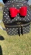 Adorable Kate Spade x Disney backpack. Black with white polka dots. Features a cute red bow and ear accents.