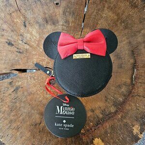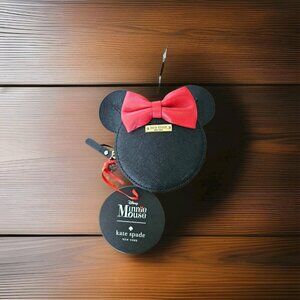 Charming black coin purse featuring Disney's Minnie Mouse design by Kate Spade. Perfect for Disney fans.