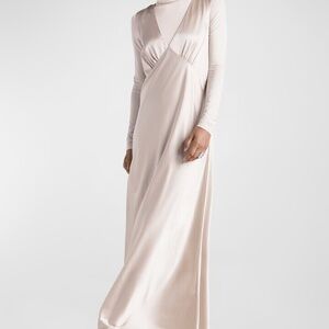 Cut on the bias from panels of lustrous silk charmeuse, this luxuriously fluid dress skims the figure before falling to the floor.