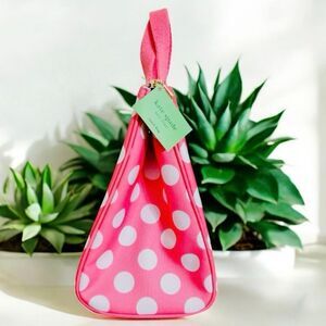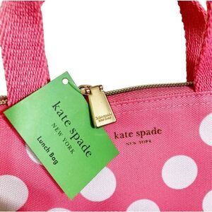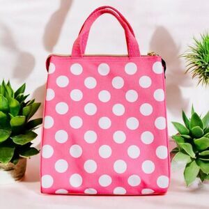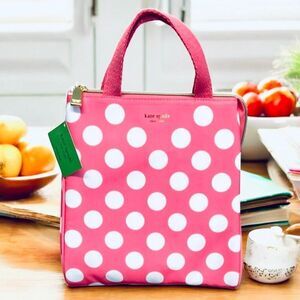 NWT Kate Spade Gorgeous Pink White Polka Dots Insulated Lunch Zip Tote Hand Bag