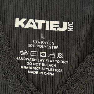 NWT Katie J NYC Black Ribbed Lace Trim Tank