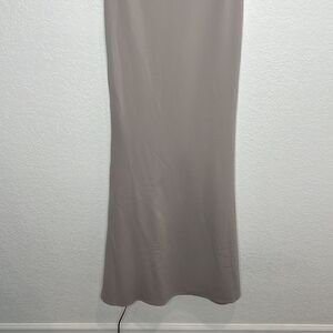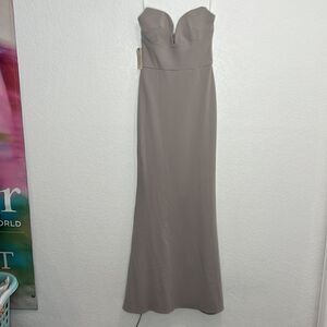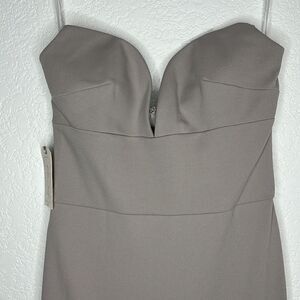 Be unique at your next cocktail event wearing gray! This is gorgeous, heavy weight material and ideal for the cooler months. Strapless sweetheart neckline, back zip, mermaid skirt. Column silhouette. Cocktail and black tie ready!