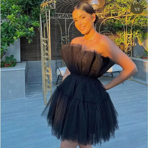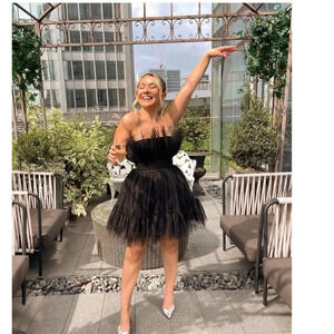 NWT Katie May Elle Mini Dress Black Tuile Puff Strapless Size Large
