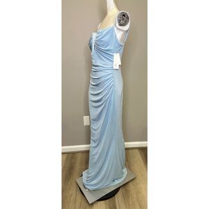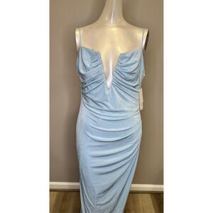 NWT Katie May Spaghetti Strap Ruched Erykah Bodycon Maxi Gown Powder Blue Large