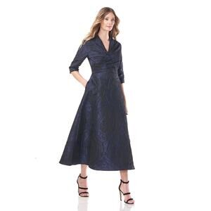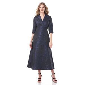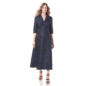 NWT Kay Unger 'Wilhemena' Tea Length Floral Jacquard Midi Dress Size 6