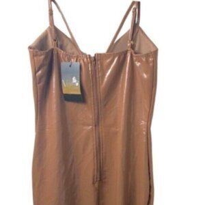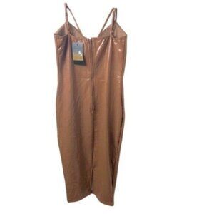 NWT Kaylee Kollection Brown Mocha Faux Leather Bodycon Party Slip Dress Small