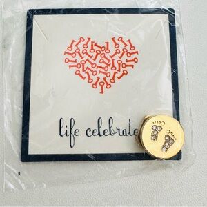 NWT Keep Collective Baby Feet Disc Charm - Gold Pave Bracelet Slider