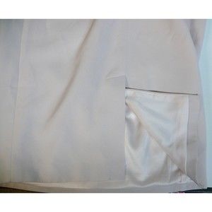 A soft pastel dusty pink, classy, beautiful! 100% poly Lining: 97% poly, 3% elastane. Hand wash cold. Fully lined. Back slit. Exposed back zipper closure.