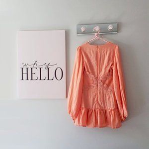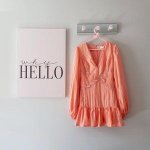 NWT Keepsake The Label Gravity LS peach long sleeve trim & ruffle mini dress