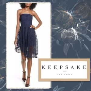 NWT Keepsake the Label Navy Blue Lace Cutout High-Low Dress Size Medium