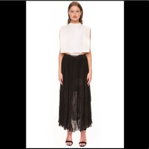 Brand New with Tags :: Size Small :: The Follow The Sun Skirt is a flowy maxi skirt that falls to the ankles with a center back invisible zip and a mini skirt lining in a sheer, micro pleated with a zigzag pattern embossed fabric