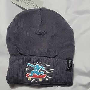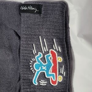 NWT Keith Haring Beenie Hat Ribbed Knit Embroidered Skateboard Skater Grey Red