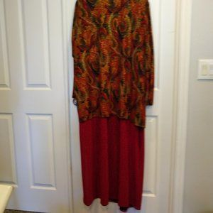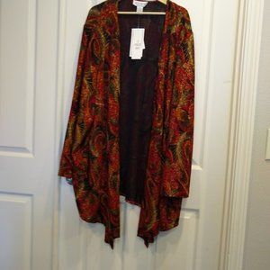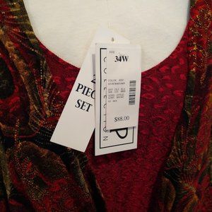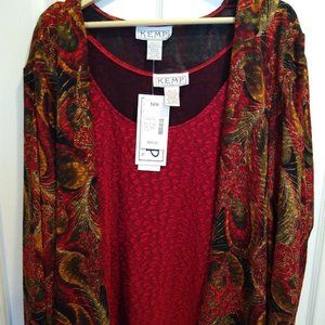 NWT Kemp Collection 2 Piece Jacket Dress 34W. Knit, comfortable, with subtle animal print texture, see pics. Red shift dress. Jacket with red, gold, and black feathery pattern. Jacket ties in front. Plus. Option wear dress alone or with another jacket, sweater, or belt. Or wear jacket over slacks, skirt and top, or a black shift dress. Dress up or down.