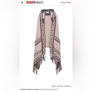 NWT Kendall & Kylie Fringe Trim Hooded Sweater Poncho