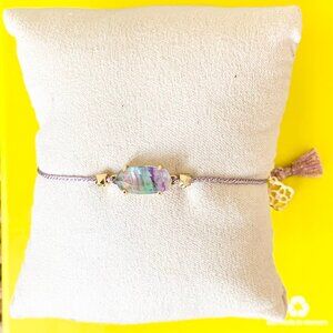 This exquisite bracelet from Kendra Scott showcases a harmonious blend of purple and cream hues, highlighted by a captivating iridescent stone at its center. The delicate design is complemented by an adjustable closure, ensuring a perfect fit for any wrist. Ideal for adding a touch of elegance to your ensemble, this piece is a standout in any jewelry collection.