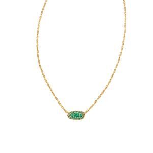 NWT! Kendra Scott Grayson Crystal Pendant Necklace in Gold Emerald Crystal