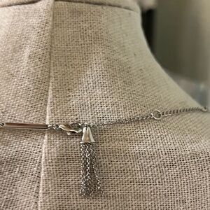 Chic silver necklace with delicate bead accents. Ideal for elevating any look.