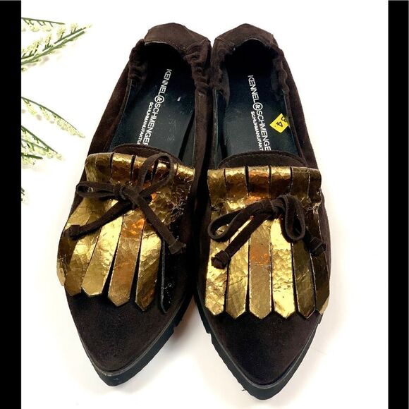NWT Kennel & Schmenger Brown Suede Fringe Pointy Toe Flats