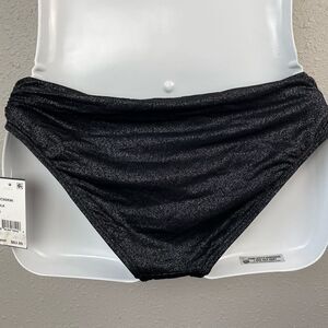 Classic pair of black bikini bottoms featuring a silver metallic threading throughout. Mixer match with your favorite top.