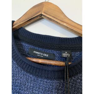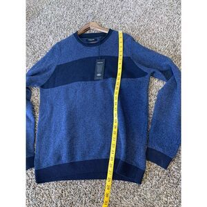 NWT Kenneth Cole Reaction Blue Sweater Mens Sz M Crew Neck Stripe Long Sleeve