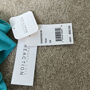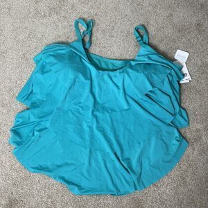NWT Kenneth Cole Reaction Women's Ruffle Swimsuit 2-pc Green Top 3X, Bottom 2X