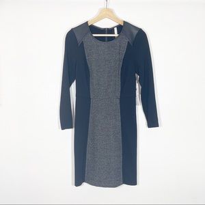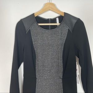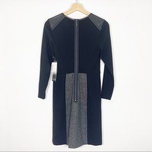 NWT Kensie Combo Tweed Faux Leather Dress Long Sleeves Black Gray Sz XS