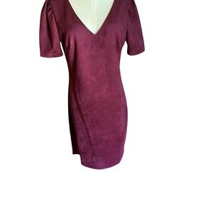 This gorgeous deep wine Kensie mini pencil dress is made of a luxe faux suede fabric with subtle stretch and a flattering body-skimming silhouette. Features a V-neckline, structured short sleeves, and a hidden back zipper. Brand new with tags, originally sold at Saks Off 5th.
