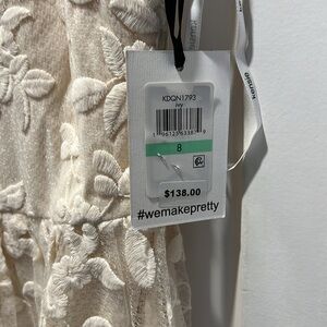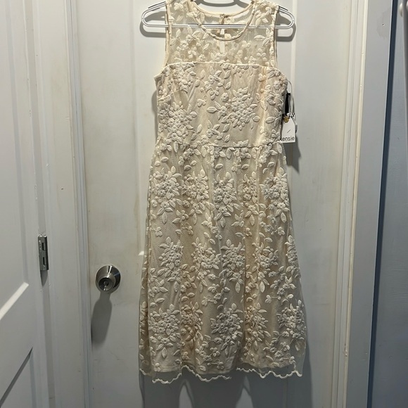 NWT Kensie ivory dress. Size 8. Lace embroidered Overlay, feminine, and soft.