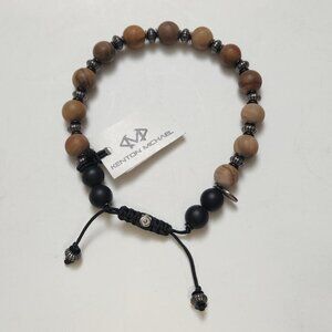 Elevate your style with this exquisite Kenton Michael bracelet, meticulously handcrafted in the USA. Featuring petrified wood beads and sterling silver accents, it offers a refined elegance. The adjustable pull fit ensures a perfect fit, making it an unmissable addition to your jewelry collection.