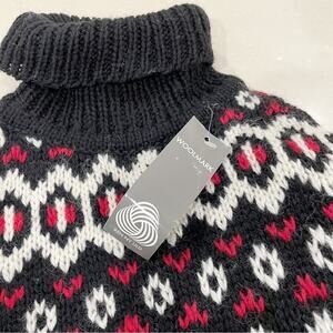 NWT Kerstin Adolphson Chunky Wool Turtleneck Sweater Black Red White Small