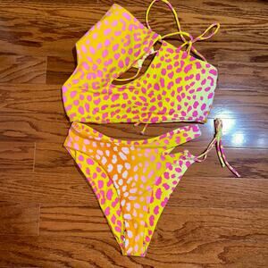 NWT Keva J The Nine Mile Asymmetrical Ombre Neon Leopard Print Bikini