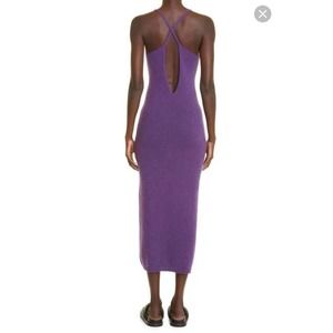 NWT Khaite Georgia Stripe Cross Back Cashmere Sweater Dress in Grape