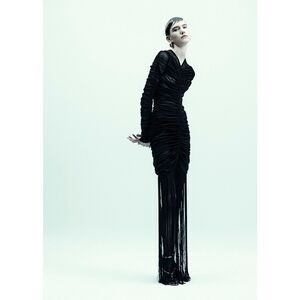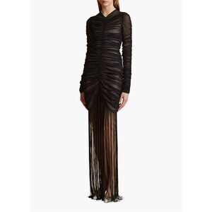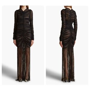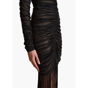 NWT Khaite Guisa Ruched Semi Sheer Long Sleeve Ruched Fringed Dress Medium $4200