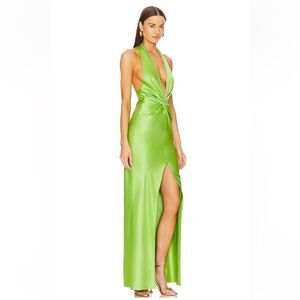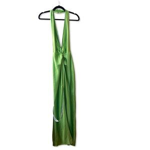 NWT Khanums X Revolve Halter Gown With Slit in Pear Green rhinestone As Is M