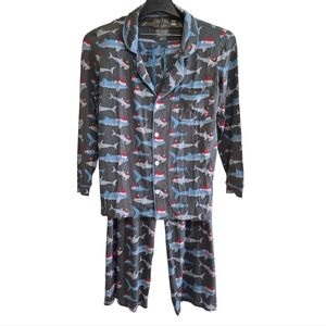 NWT Kickee Pants Pewter Santa Sharks Classic Pajamas XL