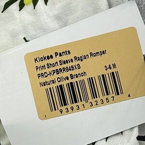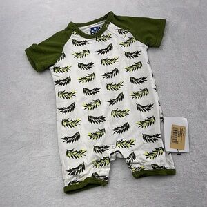 NWT Kickee Pants SS Raglan Romper Natural Olive Branch 3-6 Months