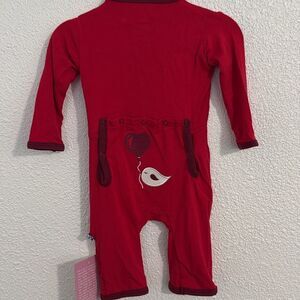 NWT- Kickee Pants - red snap coveralls- balloon bird with hearts-size 0-3 months