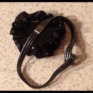 Brand new/never used!!! Adorable elastic black/silver stripe headband embellished with big, black ribbon rosette/rosebud!!! One size; considered Children's/Junior's/Young Adult's Size headband!