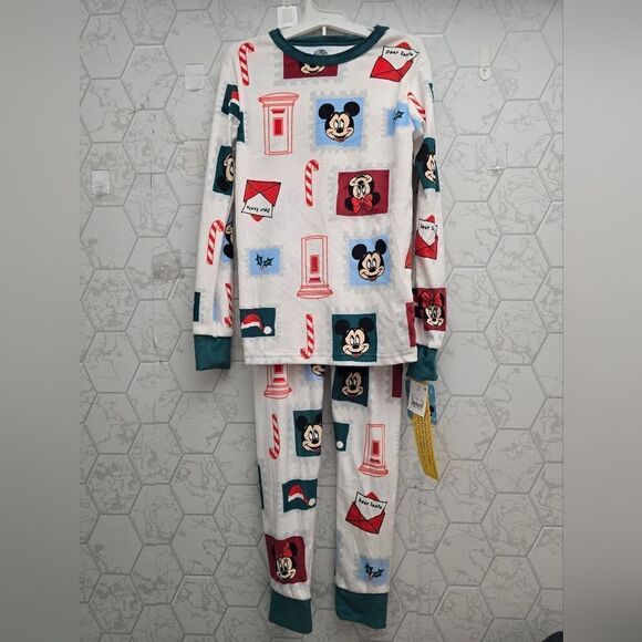 NWT Kids' Christmas Disney Mickey Minnie Mouse 2pc Snug Fit Pajama Set, size 10