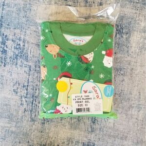 NWT! Kids Pajama Set from Sara's Prints Santa Elf Reindeer Christmas Green 3T