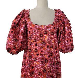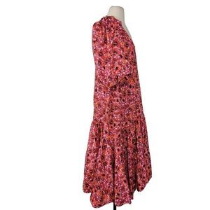 NWT Kika Vargas Maya Pink Floral Midi Dress Sz M Dramatic Puff Sleeves Ruffled