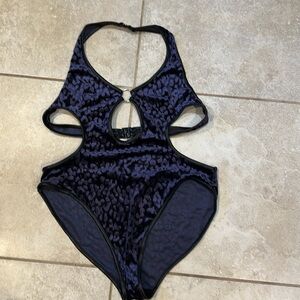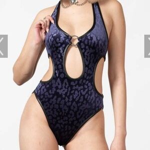NWT! Killstar Barbarella Halter Bodysuit Plum Purple women’s plus size 3X. Stretch velvet material, plum purple (looks navy blue) embossed leopard print, halter style- clasp at neck, cut-out style, adjustable clasp in middle of back, full coverage rear. Offers accepted!