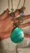 This stunning necklace features a vibrant green shell pendant, complemented by a mix of light blue and silver accents. Perfect for adding a touch of elegance to any outfit.retail markdown in store $34