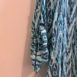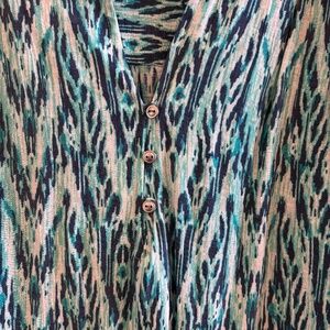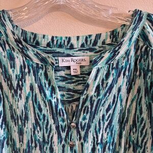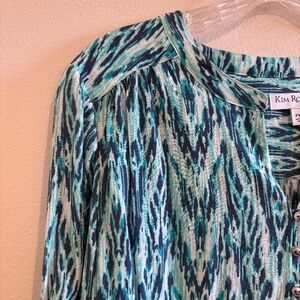 NWT Kim Rogers Petite Women's V-neck Fresh Aqua Paisley SZ PXL Top