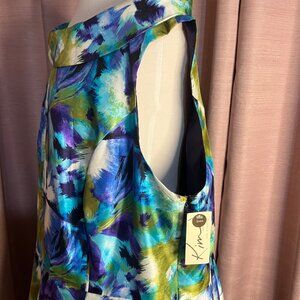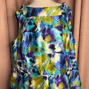 NWT Kim Rogers Women Plus Size 24W Water Color Sleeveless Dress Midi Career Event