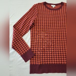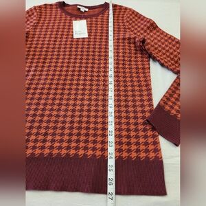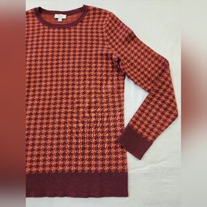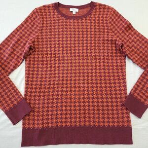 NWT Kim Rogers Women's Wine Houndstooth Crew Long Sleeve Pullover Sweater, sz MD